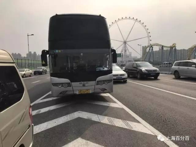 下午15时10分许,沪闵高架近中环虹梅立交,一辆“沪B”车牌、往返于“上海—普陀”的省际大巴,从莘庄方向往上中路隧道方向一次性连续变换两根车道,从3号车道一下子到了5号车道。见状,5号车道的后方车辆忙不迭踩下刹车。