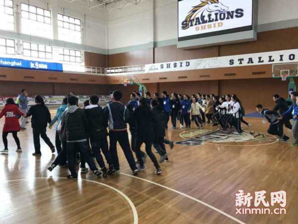 图说:上海中学室内篮球馆学生们在体育老师的带领下进行体育活动体验 新民晚报记者陆梓华/摄 题目很活