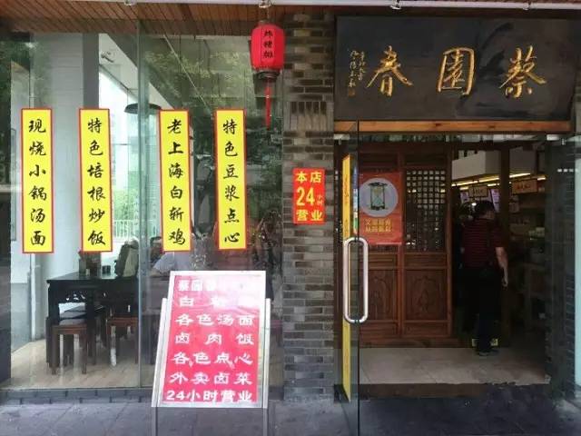 复古的装修,门楣上的牌匾大大方方写着“蔡园春”,一看就是一家传统小吃店。蔡园春出品繁多,豆浆点心、熟食、炒房、面食、糟菜,可谓样样全能。
