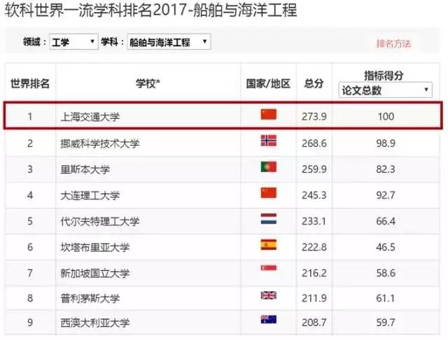 上海交大昔日被别人称为“船院”,在本次最牛专业评选中,船舶与海洋工程自然毫不例外入选了,不仅如此,早在2017软科世界一流大学排名中, 船舶与海洋工程排名世界第一!