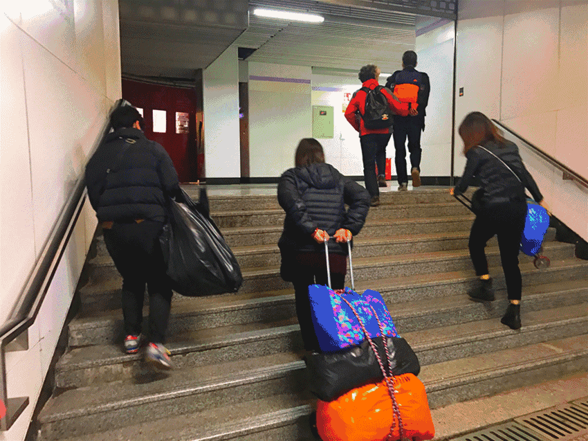 沪小图刚出地铁站,周围全是拎着黑胶塑料袋的人,将体积是自身2到3倍的蛇皮袋甩上肩头的挑夫;还有 拉着小拖车扫货的人。