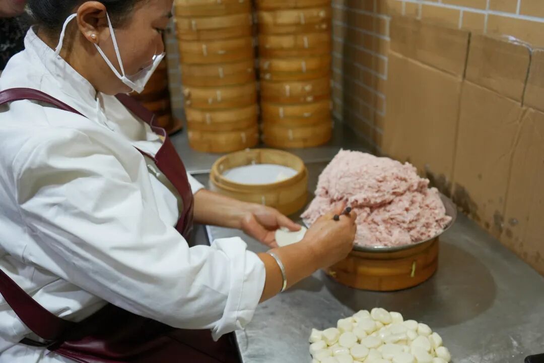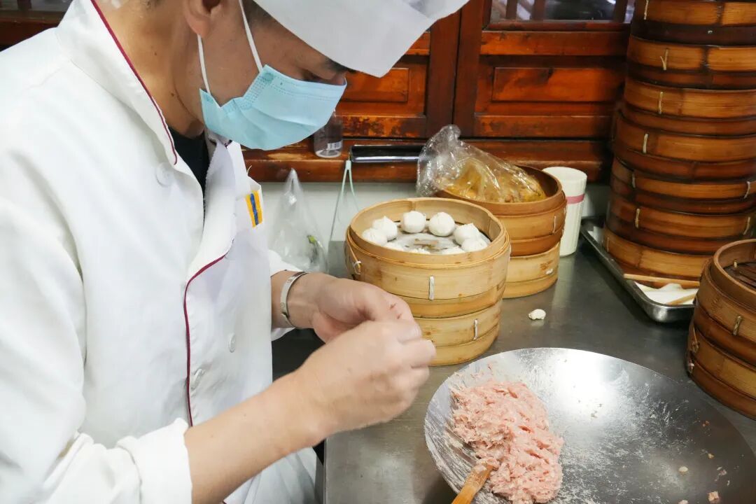 南翔小笼馆的师傅包小笼,快得像开了倍速!但每只小笼造型周正、褶子清晰,外皮轻薄却不易破,裹着足量鲜嫩肉馅。轻咬一口,鲜香便知这等待不虚——原来真有效率与美味的双全法。