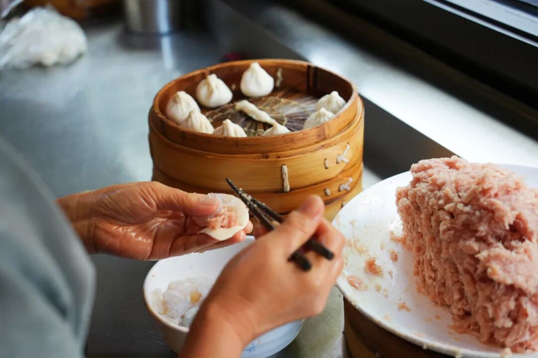 开在南翔老街石板路旁的南翔饭店,光听店名就透露着地道。老师傅30年的手艺,坚持用老面发酵面团,清晨现和的面带着自然麦香,擀出的薄皮能清晰透出粉嫩肉馅。咬开的瞬间,鲜汁“滋溜”冒出来,咸鲜度刚好戳中味蕾,配上一碟姜丝醋,解腻又提鲜,一口吃出老南翔的味道。