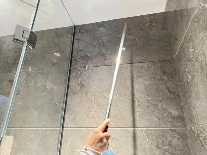 随后,虞女士又敲了一下主卫和客卫的墙砖,“咚咚咚”的空鼓声此起彼伏,尤其是主卫淋浴区,墙壁上沿的个别墙砖敲起来都是空响。