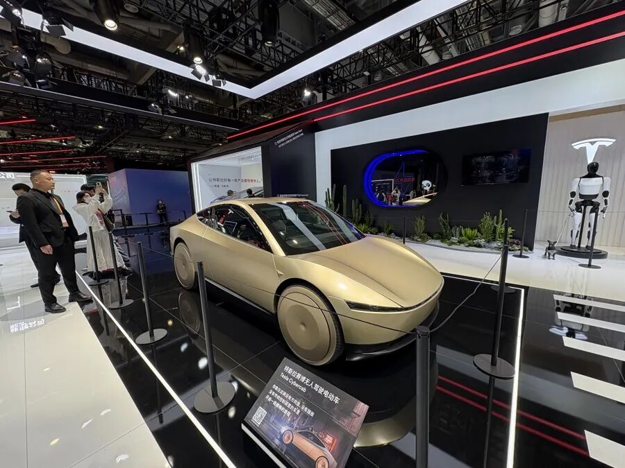 开展前,特斯拉将带来Cybercab亚洲首秀的消息就在网络上引起关注。这是一款特斯拉于2024年底发布的无人驾驶出租车,没有方向盘、没有踏板,专门为全自动驾驶打造。从外观上看,这款车身造型动感简洁,风阻与能耗极低;车身呈现金黄色,直接使用预着色的材料制作车身表面部件,无需涂装;车轮毂采用全封闭设计,外观科幻感拉满。