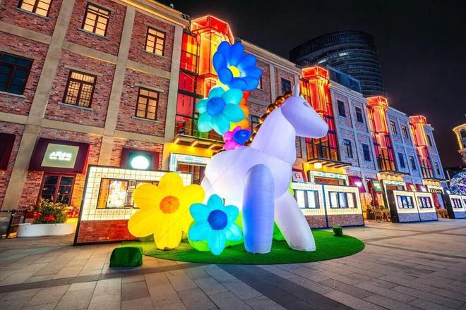 1月23日,“乐游虹口中国年”海派灯会正式亮灯。当晚,滨港·今潮8弄“亮马生花”“骏跃瑶台”“驰梦甜爱”“驭马游春”四组大型灯光艺术装置同步点亮。马的灵动与春的暖意融入百年弄堂肌理,为市民游客呈现中西意象碰撞共生的新春图景。