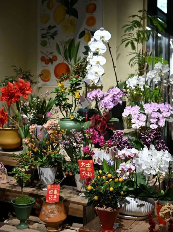 步入占地2万平方米的恒温花棚,仿佛闯入早春花园。各色年花姹紫嫣红,将新年氛围感瞬间拉满。与传统花店相比,这里选择更多、价格更优,是沪上懂行花友的年货必选地。