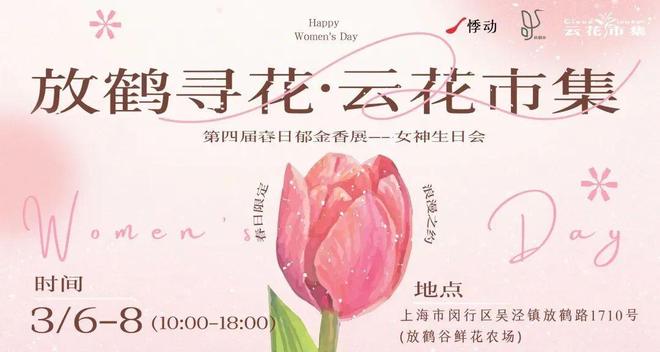 放鹤寻花·云花市集,40摊位逛不停:3月6日至3月8日每天10:00起春日市集同步开启,40个特色摊位集结,文创周边、美食品鉴、diy手作、鲜花周边应有尽有,赏花之余逛吃玩乐,解锁乡村独有的春日魅力。