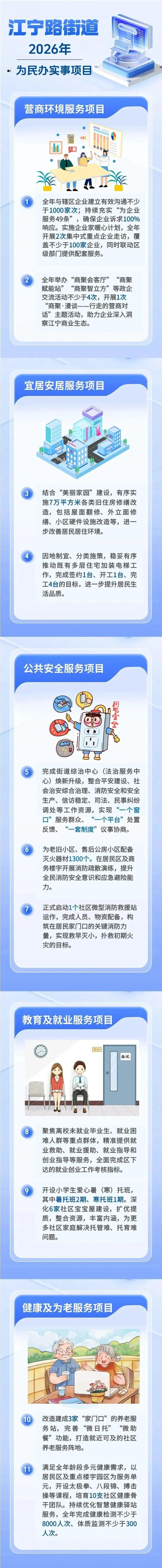 会上,代表们审议并表决通过了江宁路街道2026年为民办实事项目。2026年江宁路街道将围绕营商环境服务项目、宜居安居服务项目、公共安全服务项目、教育及就业服务项目、健康及为老服务项目等5个方面11个项目开展为民办实事项目。一起来看↓↓↓