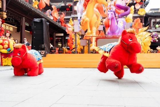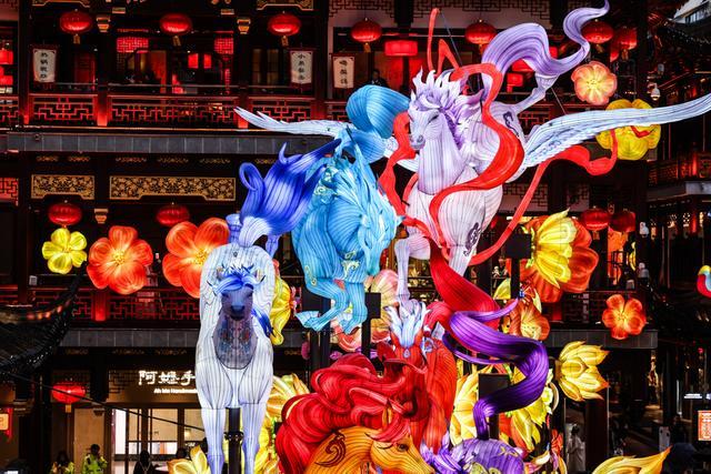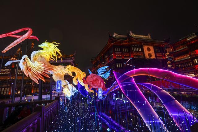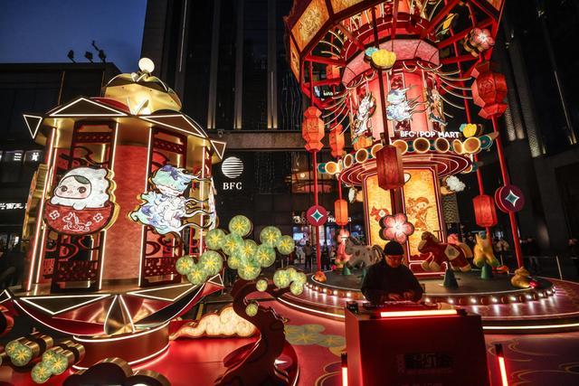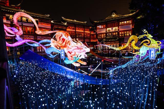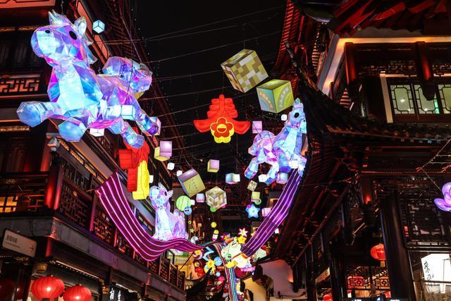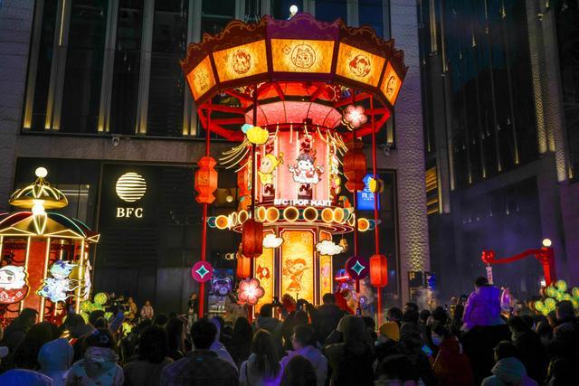 在豫园,可欣赏非遗鱼灯巡游、高跷演艺,邂逅送福的福禄童子与穿梭的机器萌马;行至BFC五楼江景露台,可将兔子灯挂上祈福树,在陆家嘴天际线与外滩江景衬托下,观赏非遗皮影戏,感受传统与未来的对话。