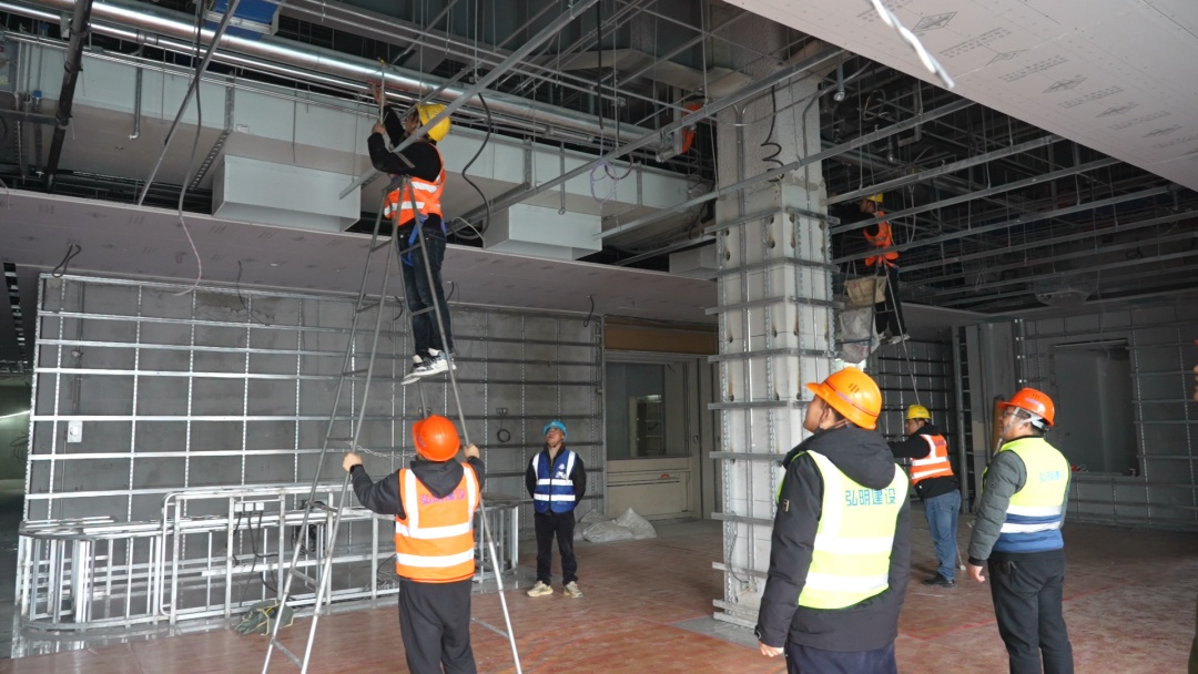 上午,记者在嘉定区永新路800号的施工现场看到,急诊大厅和住院大楼内,工人们正紧张有序地进行室内装修作业。施工方介绍,新院自2022年12月开工建设以来,主体结构和外立面施工已基本完成,室内装修进度也已超过60%。