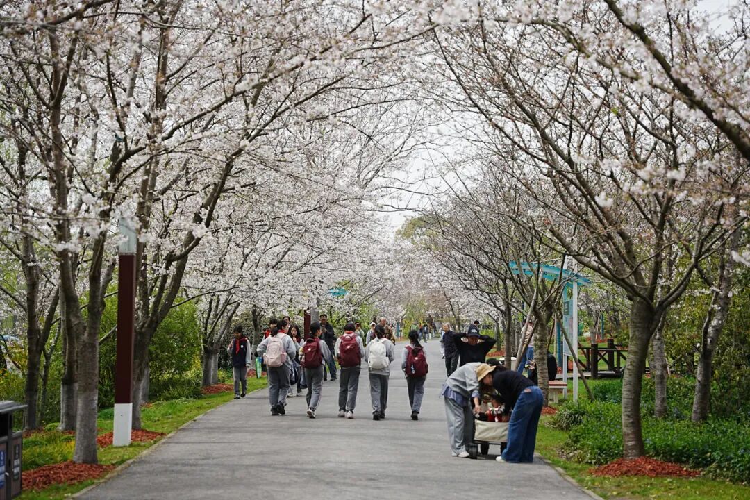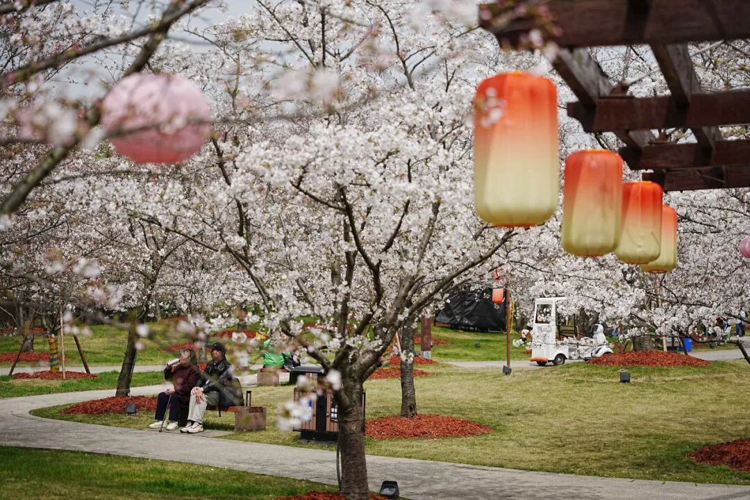 目前,宝山区顾村公园内中樱的花开量已达到80%,层层花枝交错相拥,织就漫天粉霞,满园皆是春意流淌。即将到来的这一周正是中樱最佳观赏期,这也标志着顾村公园正式迎来全年最美的“高光时刻”——春色在此刻达到巅峰,每一处转角都是一幅画,每一树繁花都是一首诗。