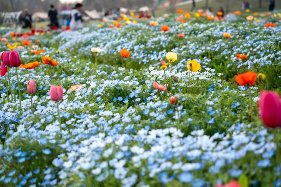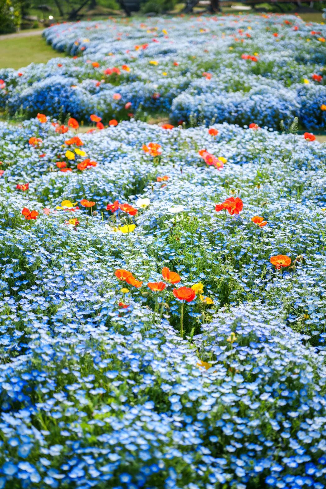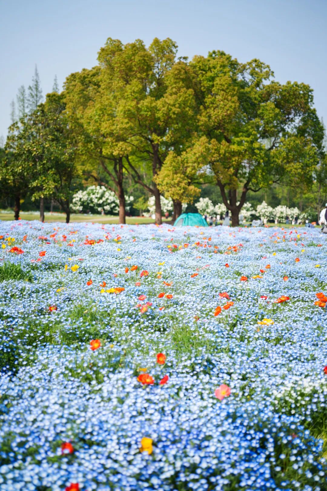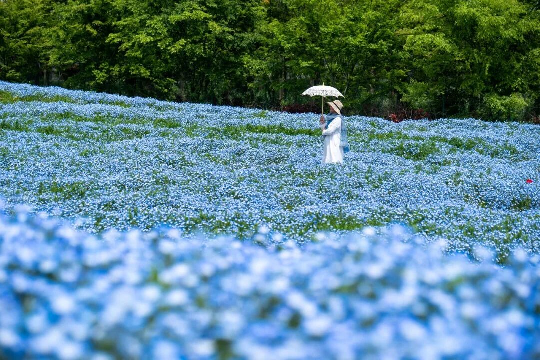 进入公园,不用刻意寻找,大片震撼人心的蓝色花海就会毫无保留地撞入你的视线!